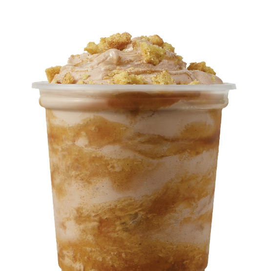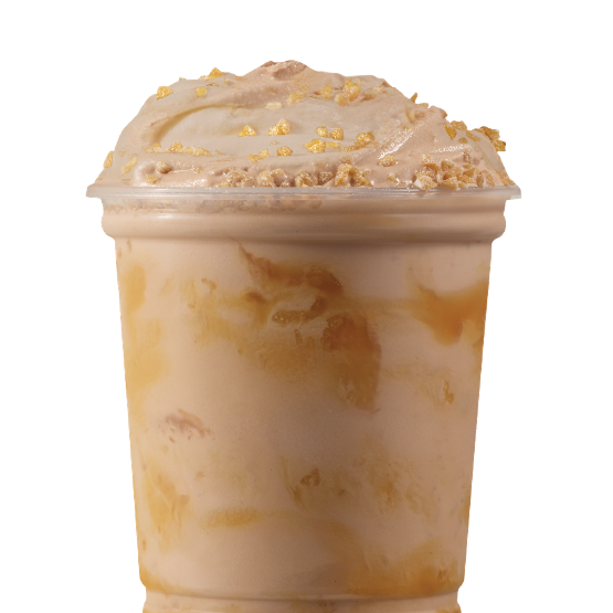 Vanilla Frosty mixed with caramel flavor and crunchy toppings.
