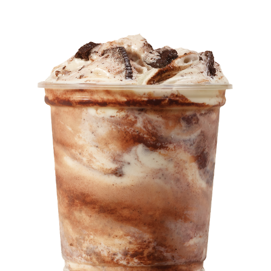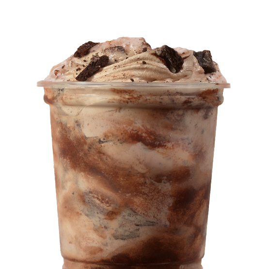 Vanilla Frosty blended with OREO® pieces and rich brownie bites.