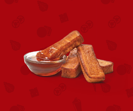 Four golden French toast sticks with a sweet, homestyle flavor — 460 calories.