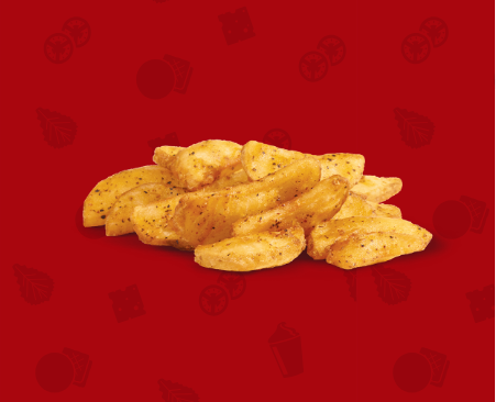 Crispy, seasoned potato wedges served fresh — 280–510 calories depending on size.