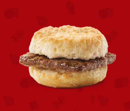 Seasoned sausage served on a warm, flaky biscuit — 470 calories.